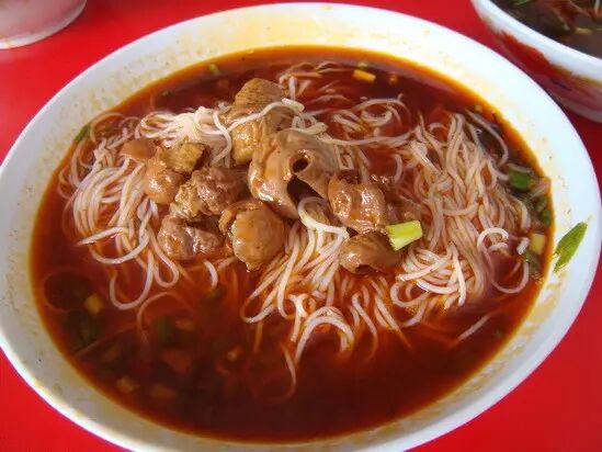 米粉是绵阳独特的小吃,细细的米粉,看起来像粉丝,据说是阴干的,结构上来说更容易吸收汤汁、入味。