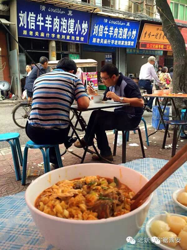 刘信卖泡馍,汤香肉烂价实,后增小炒泡馍,肉大馍筋,酸辣鲜香,名大振。坊间很多家做泡馍直接用泡馍汤,而真正地道的小炒泡馍一定要有lan牛肉的汤,味道出来是酸辣、料香、牛油气搭配均衡才为正道,正是这种霸气十足的味道让人欲罢不能。