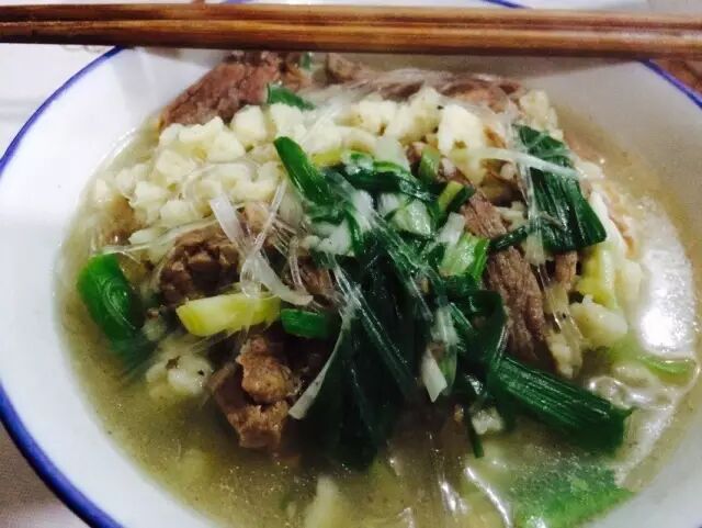 蒸饺绝对是招牌的,配的蘸汁也是棒棒的,味道刚好,不辣也不酸。蒸饺皮很薄,咬一口浓浓的汁流出来,里面的牛肉馅也是很美味。