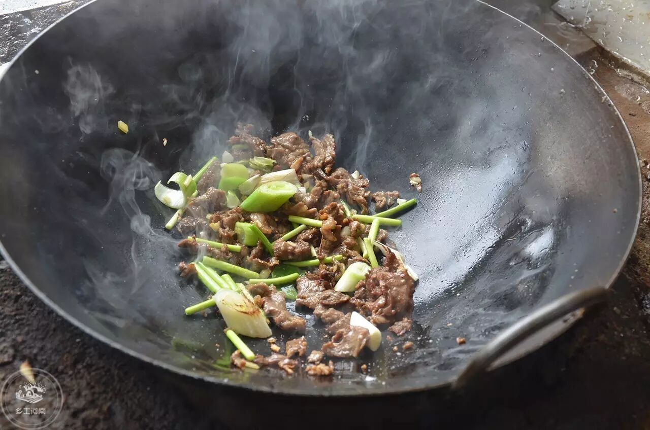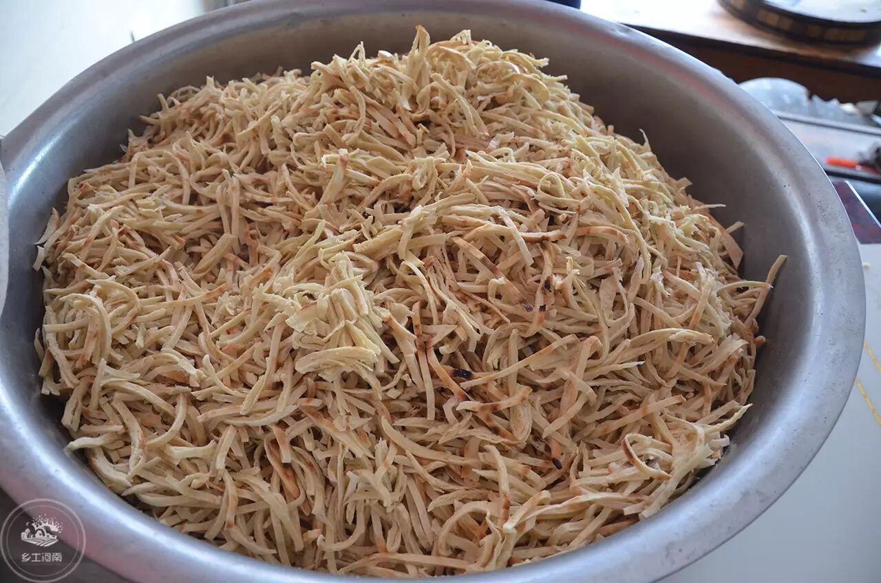 切成细丝的锅盔,看起来如面条一般,锅盔是死面做的,这样容易入味,吃起来也不会发酸。