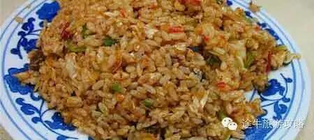 “酸菜炒米”其实是炒饭。炒米混合了酸菜的酸、油的香,吃起来酸酸辣辣,香而不腻,米饭不粘连,口感清爽。配上涮牛肚、烤肉、酸梅汤、鸡蛋汤等一起吃,更有一番风味。