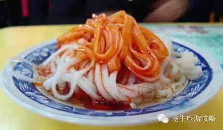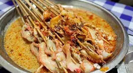 涮牛肚是西安街头名吃,把新鲜的牛肚肉切成片,用竹签穿起来,在高汤里煮熟,然后蘸上由的芝麻酱、辣椒酱、各种调料做成的汁子,浓香筋道,美味又可口。