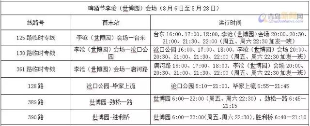 ♦ 啤酒节期间,以下三条公交线路终点站至啤酒节世博园会场,每天下午16:00、17:00、18:00增发市内至世博园公交车,并于晚间20:00起,每半小时增发世博园至市内公交车。361路(水清沟-恒星学院)
