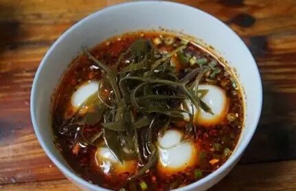 好多地方是吃芝麻汤圆,达州人的早餐是肉汤圆。有麻辣的,酸辣的,还有肉松的!这么多口味的汤圆放到同一个碗里头,你咬每一个汤圆都会有惊喜。这个汤圆的汤是咸的,里面加了海带,银耳,还有一个鹌鹑蛋,相当丰盛!