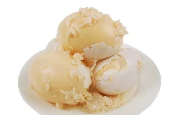 宜宾“叙府陈年糟蛋”是把鲜鸭蛋采取糟腌制而成的。用小指粗的竹棍轻轻敲击蛋壳,以蛋壳轻微破裂,蛋膜完整无损为合格。先把糟蛋置于碟中,加适量白糖,再滴白酒少许,用筷略微搅动,待蛋、糖、酒融为一体后,即可徐徐拈食下酒,别有风味。