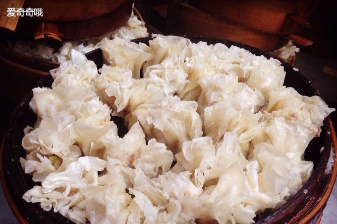 北方的烧麦皮皮一般偏厚,四川这边的烧麦因皮薄,蒸熟后皮料浸油呈半透明状,透过皮亦可见其馅而取名玻璃烧麦。在制作中,要用多张面皮重叠,而且面皮要像丝一般薄。早餐来半笼,配上一叠熟油辣子,一碗海带汤,很巴适!