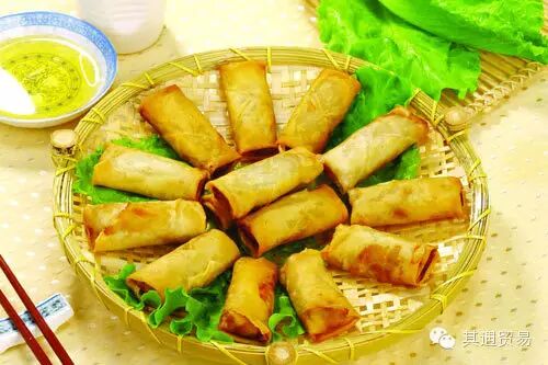 荠菜春卷 荠菜春卷的用料和制作工艺都有独特之处。用料上,春卷皮除用水和面外,还加 鸡蛋清,以增加春卷的酥脆。制作工艺上,将面粉拌成稀浆糊,再用勺将面糊 “摊”入平底鏊焙皮,所摊皮之薄,足以体现中国烹调艺术的绝妙。其特点为皮 薄如蝉翼,透明酥脆,吃起来有浓郁的乡土气息。
