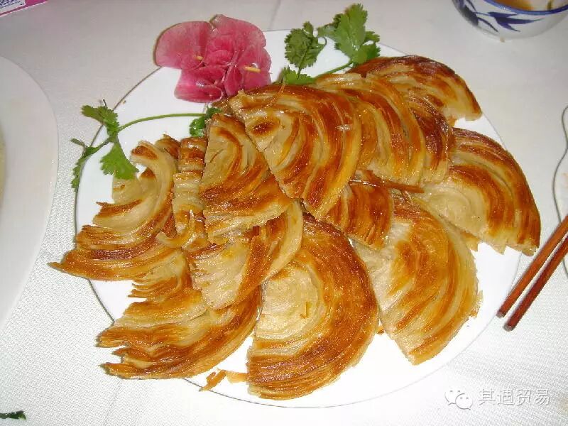 太后饼 太后饼为富平县著名小吃,已有2000多年的历史。主要用板油、面粉加佐料和制, 经烘烙而成。其特点是外皮金黄、油润酥脆、内层绵软、咸香适口,富含动物脂 肪酸等营养素。