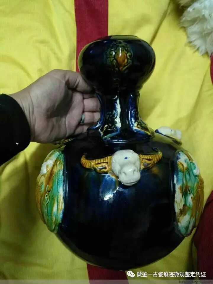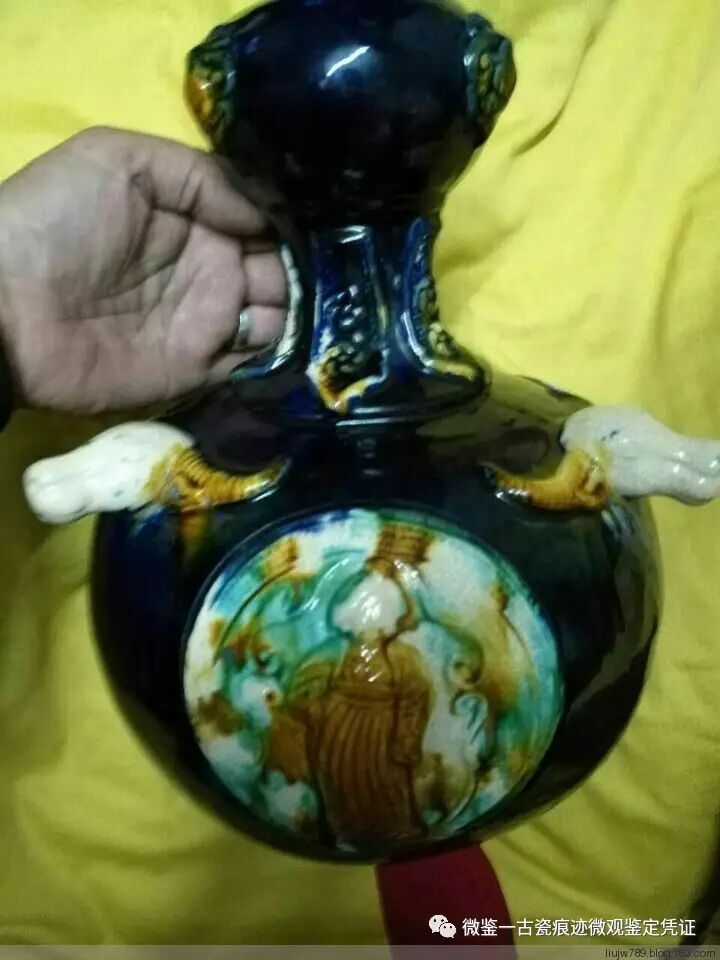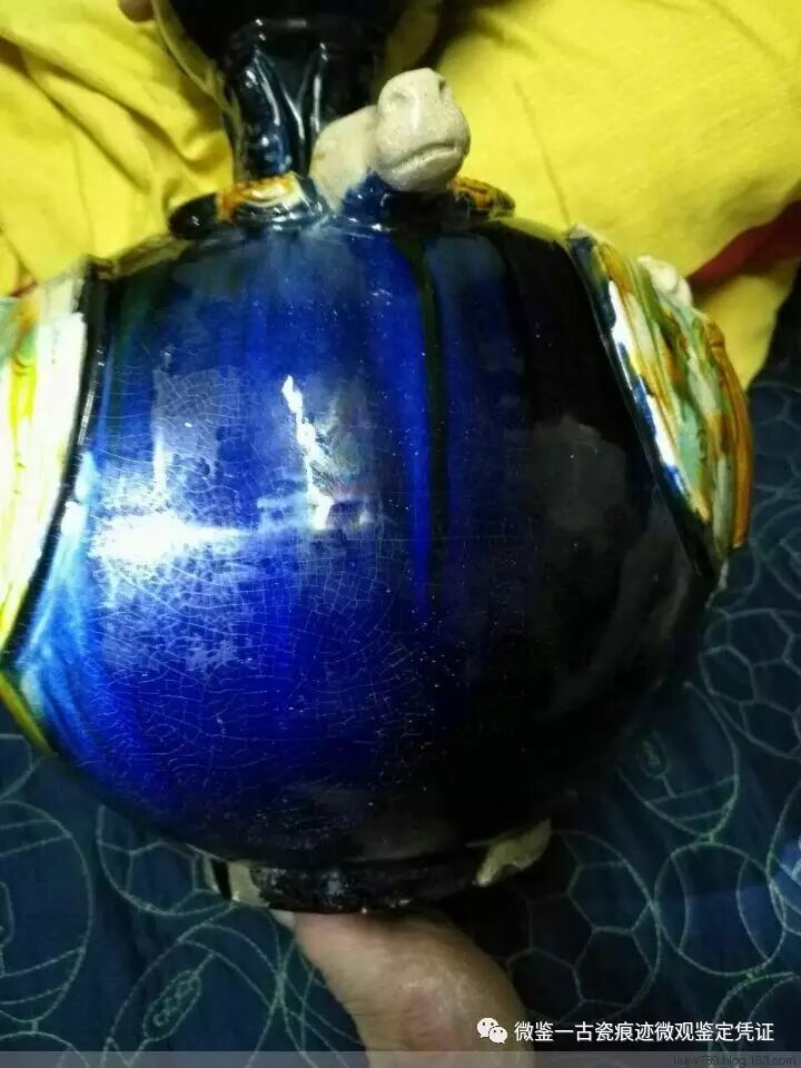 刘进武:唐三彩西亚进口钴料宝石蓝釉开光三彩人物贴牛头葫芦瓶微观痕迹鉴定凭证(wj)