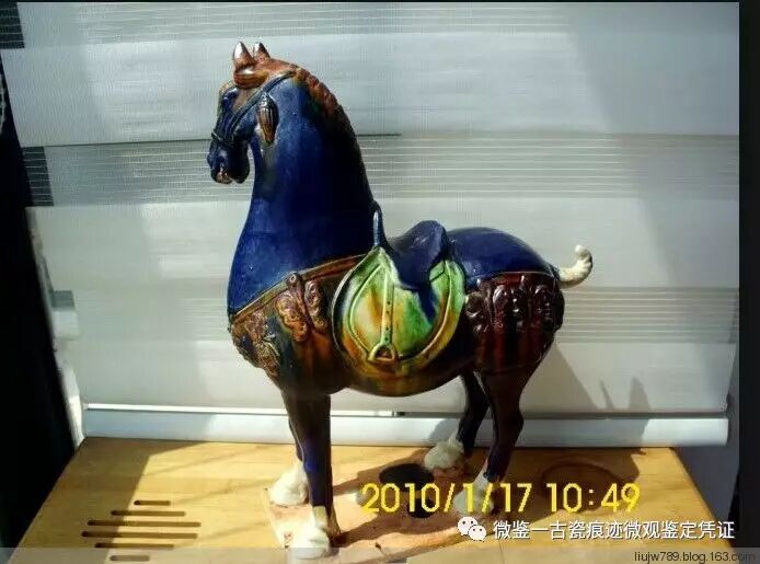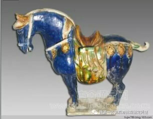 刘进武收藏蓝釉钴料唐三彩马宝石蓝色。