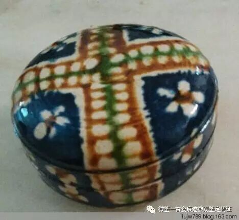 唐三彩西亚进口钴料蓝釉官窑粉盒刘进武收藏