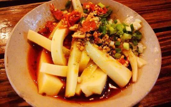 伤心凉粉是四川的汉族客家特色小吃之一,伤心凉粉一说有二解:一为居住在洛带镇的当年湖广填四川来的广东客家人思念家乡时做的凉粉,因为思念而伤心,故得名;二则指该凉粉秃辣,吃了凉粉的人都会被辣出眼泪,个个泪汪汪,别人还以为遇到了什么伤心事。佐料“色泽鲜亮”,凉粉“爽口滑嫩”,小米椒威力巨大,真是让人“一把眼泪一把鼻涕”,“越吃越伤心”。一定要再来碗“甜甜”的开心冰粉“才能化解”。推荐去洛带古镇广东会馆那家,坐在“古色古香”的院子里,看服务员“用竹簸箕”端来凉粉,很有川西风情。