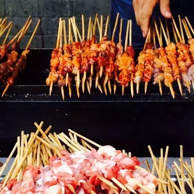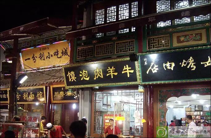 听着这悠然的故谣,伴着钟楼的钟声,转过便是西安回民街。品味羊肉泡,肉夹馍,岐山臊子面,擀面皮。听说在傍晚,老干妈跟锅盔更配哦~