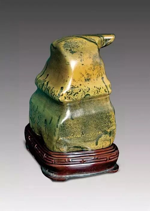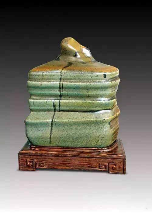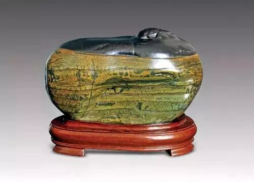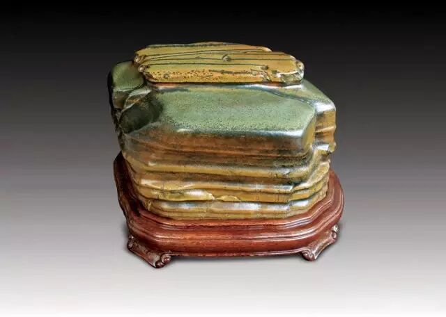 该石是深潭中的卧底石,色调沉静优雅,其石色和石质如彩陶,表面有蜡状光泽;具有翠绿、墨黑、橙红、棕黄、灰绿、棕褐、浅蓝、青灰、古铜等色泽,石上天然过度色极佳,色泽条纹层次分明;石肤润泽,有的似陶色,有的像古瓷;形状多为块状,常有高低错落的方圆角;有绿玉石、黑釉石、黄釉石、粽釉石等多个种类。