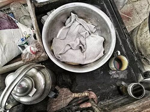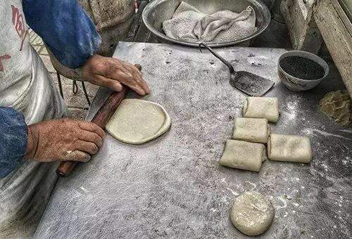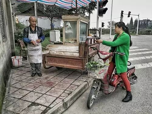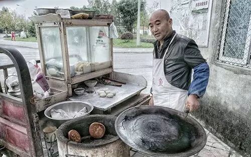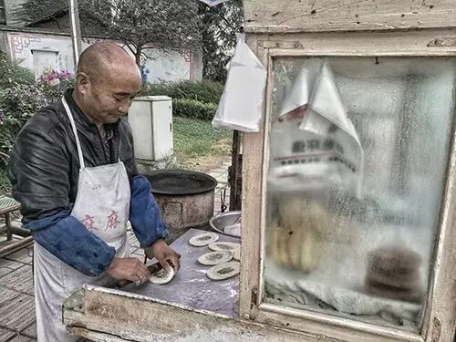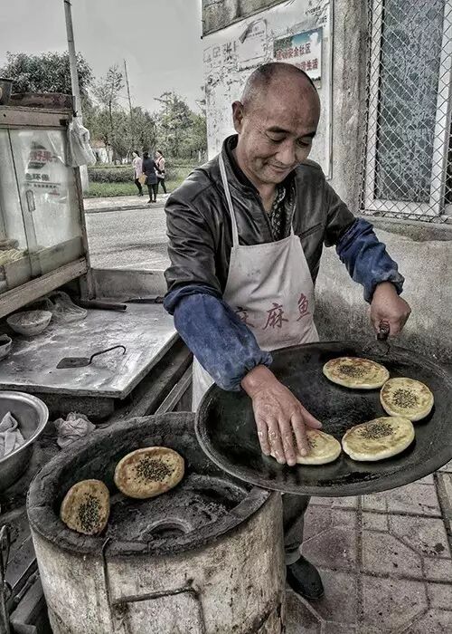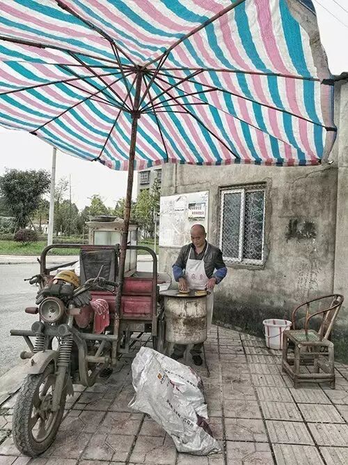 周末回到小镇,陪家人散步,路过街口的转角,打锅盔的师傅又出现了,立即跳下车,手机创作一组!