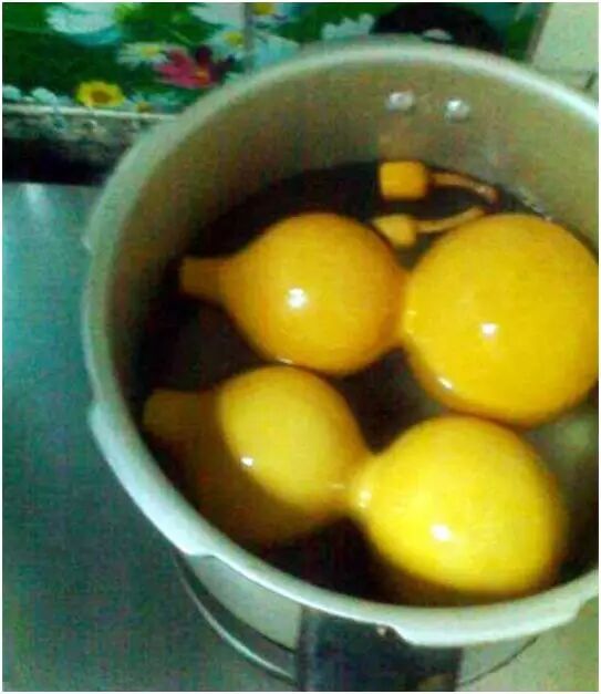 第四步,这个步骤比较关键,此时葫芦中的籽和瓤已经被清除干净了,往葫芦内部灌水,放在锅里浸泡30分钟左右,目的是让葫芦内部的瓤被水浸透。此时使用高压锅压一下,大概10-20分钟就行。时间到了之后就可以开锅看效果了,使用高压锅煮一下主要是为了让葫芦瓤的苦味消除,更好的让葫芦瓤和葫芦壳分开。而且经过水煮的葫芦会变得更加坚实,不容易坏。