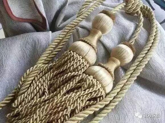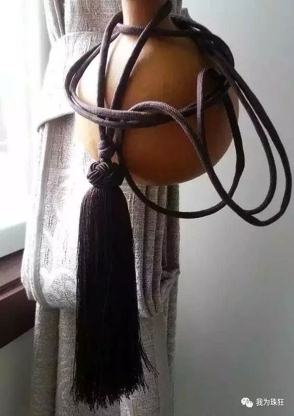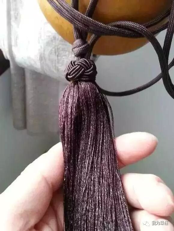 捆绳:起初绳子确实是个头疼的问题,太细没有质感太粗又不好寻。留意身边正在使用中的粗绳如礼品纸袋的挂绳,窗帘扎绳,大的中国结等,受到长度和颜色的限制都不如意。某宝上有一种叫菠萝绳的颜色粗度都很理想只是价格稍贵,追求完美的朋友可以考虑。因为自己平时喜欢关注军事和户外就联想到了伞绳,论耐久与质量这是最棒的选择,而且价格很便宜颜色也丰富。我选择咖啡色的低调寻常不张扬主要还耐脏。捆绳一端是流苏,这点我借鉴日本酒葫芦,他们多采用双流苏。我嫌繁琐自己就改用一个,买了细线在老娘的协助下捆扎了一个大号的流苏饱满飘逸,虽然和伞绳的咖啡色稍不统一,不过感官上还是蛮和谐滴(流苏编法简单网上可搜到制作教程,因为是单股所以两根伞绳要合并放于流苏内绳头要打个死结)。纸袋挂绳和窗帘扎绳是细丝缠绕,剪断拉直就可以使用喜欢这种质地的朋友可以选择,而且废物利用更经历实惠。