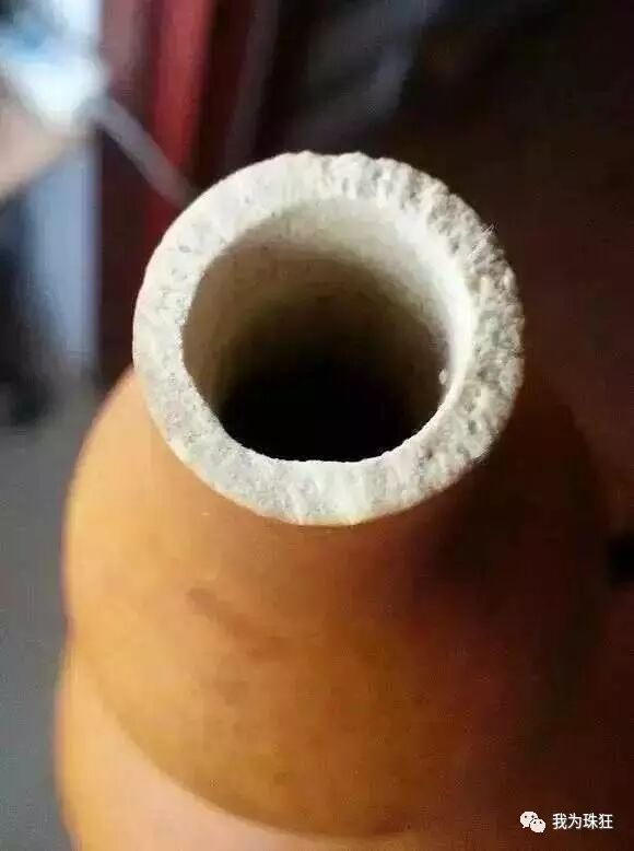晾晒:三天后将糯米汁倒出,冲洗内膛不要残留米粒以免霉变产生异味,然后再注入新熬米汁继续阴干,三日后倒出米汁挂在干燥通风处一周左右,不能暴晒以防开裂视环境与温度再做调整,然再加新熬米汁继续阴干一周左右,挂胆和晾晒共计两三次循环就差不多了并非越多越好,两者的时间都是一周,因为天热所以糯米汁挂胆一周做两次。期间加水观察是否渗漏。本长葫芦多为芝麻脐有的会出现针孔,若是漏水可将蜡烛刮出碎末落在脐上用火机来回微熏融后渗入就可防漏(方法和核桃封脐类似)。