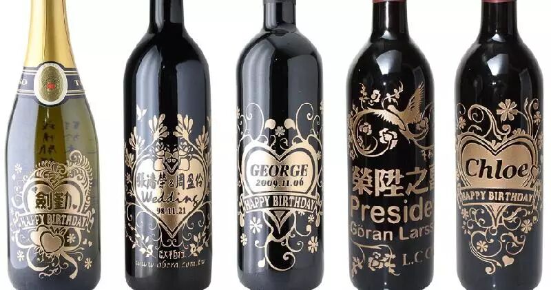 激光雕刻机雕刻酒瓶时图案是通过电脑输入设备进行控制的。因此不用做模板,哪怕是单幅图案也可以快速的设计定制,相对于标签印刷要简单的多。激光雕刻属于非接触式雕刻,激光和机械雕刻不同,不会和刀头一样产生机械应力,造成瓶体无法固定或者破碎等。另外激光直径比较小,达到几丝,因此雕刻精度要高很多。