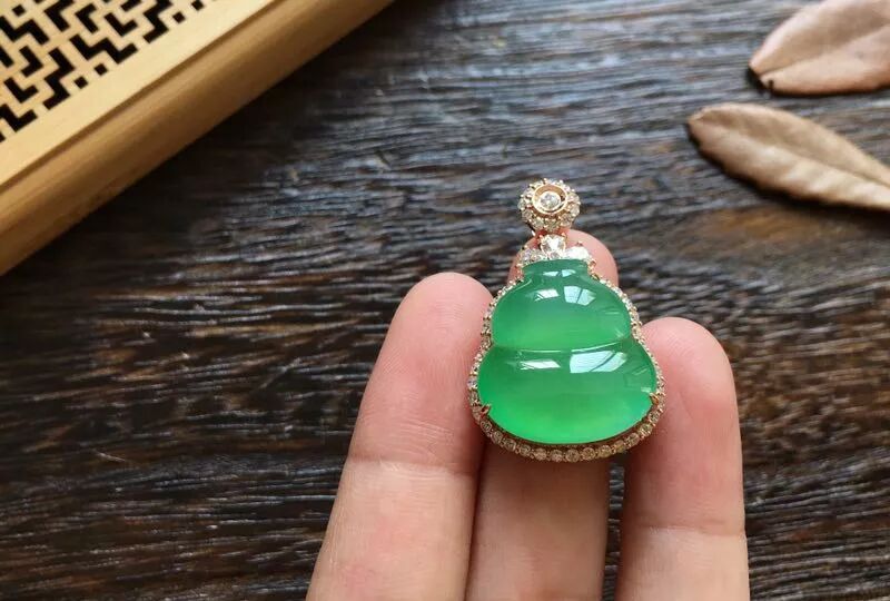 恩玲龙这次带来的冰种葫芦裸石,种质细腻,透明度高,起荧光。葫芦上的颜色淡雅,整体造型饱满。