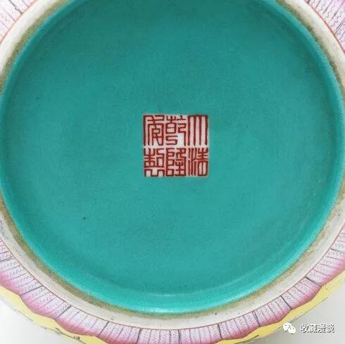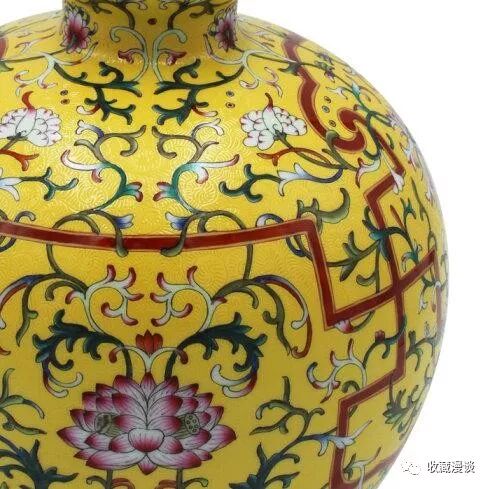 粉彩可分为“白地粉彩”和“色地粉彩”两大类。“白地粉彩”是在白胎透明釉上绘粉彩图案,康熙、雍正时期都只见有白地粉彩瓷器。而乾隆时期国力昌盛,奢靡之风盛行,表现在瓷器上,则是富丽、繁缛的装饰风格大行其道。“色地粉彩”就是在这样的时代背景下应运而生,即在某种颜色釉瓷的基础上绘粉彩纹样,如红地粉彩、绿地粉彩、黄地粉彩、蓝地粉彩、紫地粉彩等等。黄地粉彩,在清宫档案里也称为黄地粉彩,据乾隆内务府档案记载,皇帝曾旨唐英”……外面俱烧黄地粉彩地杖,花样各按吉祥纹样……”。