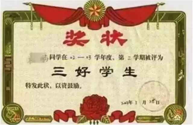 得到一个三好奖状要高兴很久,那是最大的荣誉!
