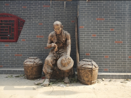 小吃货街仿古建筑,一砖一瓦皆有情趣:飞檐、墙雕、门墩、幌子、对联......惟妙惟肖的雕塑生动演绎出人间油盐酱醋茶。