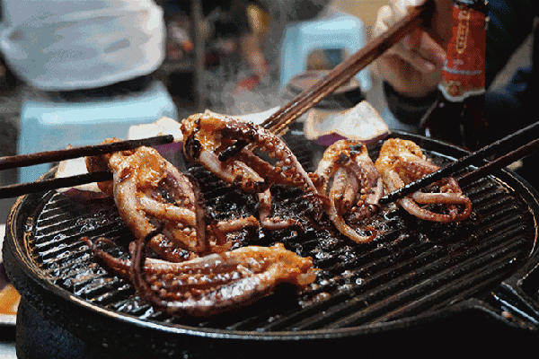 这家功夫烤吧的看家菜是火燃鱿鱼:大块鱿鱼放在热油上滋溜滋溜烤,待散发出浓浓的鱿鱼香便可以入口,全温馨提示:鱿鱼虽香,可不要多吃,一份包您过瘾!
