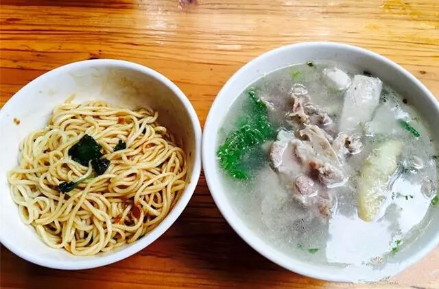 面要自己拌的,在拌的过程当中散发出来的香味很诱人。猪杂汤的料很足又新鲜,面本来就有蚝油、葱花蒜末配着,吃起来有嚼劲,混合着猪杂汤一起吃超级美味的,真的好抵食~
