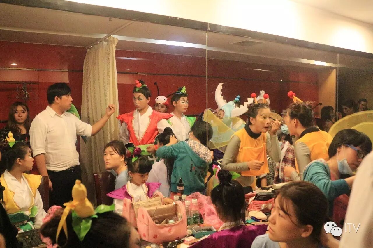 到达湖南大剧院之后演员们马不停蹄地准备晚上演出工作啦。布景、对灯光、对话筒、对台词等等都有条不紊地进行着。跟着芒果小兵来瞅瞅