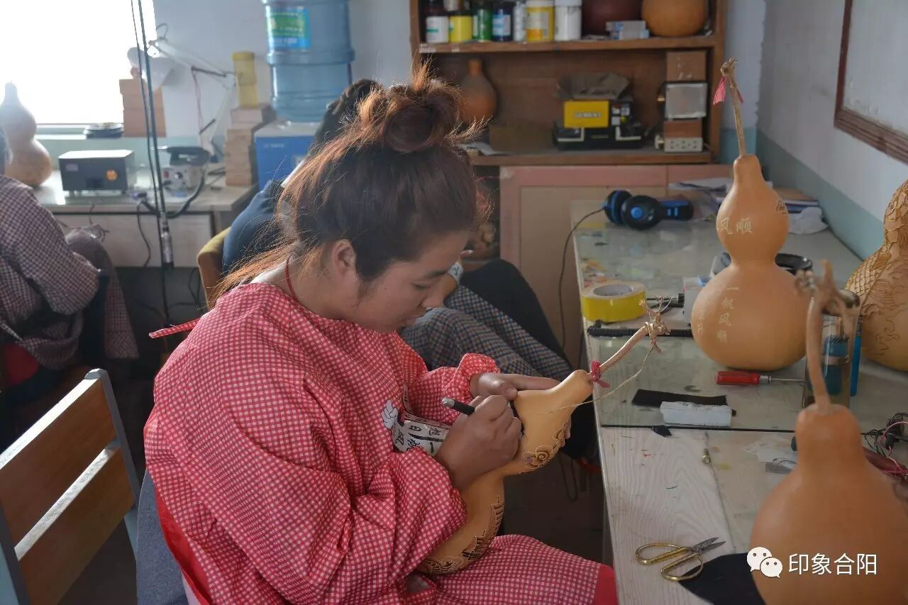 谁说葫芦只当瓢!洽川有制作葫芦工艺的传统,不过,始终没有形成气候。 2012年李菲毅然回乡,萌生了开发葫芦产品的想法,得到了丈夫的支持,于是夫妻俩开始考察,查找资料,引进优良品种,动员亲属参与试种。这是与传统产业进行竞争,处于试验初期,没有人相信能够成功,李菲夫妇向村民提出保证,她若失败,甘愿以当地产值的双倍进行赔偿,愿意承担产前售后的风险。这一招很灵,这一年南义村有十多户参与,种植面积达20多亩,李菲夫妇趁热打铁。创建了洽川葫芦种植专业合作社,主要从事葫芦种植、加工、销售,农业技术推广,农业观光,农业生产资料统购以及生产经营的相关服务。在洽川葫芦种植合作社组建初期,她网上了解国家政策及相关的手续,生活中又发挥她的社交才能,忙忙碌碌办理各种证件。说服并带动妇女扩大葫芦种植规模,积极鼓励村民入社,组织农村剩余劳力从事葫芦除草、打掐等田间管理工作。使她们能立足本土,既发展特色农业,又能治家照顾好孩子,种植户,非种植户都有一份可观的收入。这一年,专业社有社员120多人,面积达100多亩。洽川葫芦工艺制作技艺有一定的基础,李菲夫妇不失时机,2013年,创办了葫芦工艺美术加工厂,李菲担任厂长。这是一次大胆创新,李菲边干边学,边学边总结,采用民间手工镂空传统工艺。李菲说,她是门外汉,蹲在那些师傅旁,一蹲就是一整天,有时为了掌握这个产品的全部工艺过程,有时候会费五六个小时的时间,她从未半途而废。仅半年功夫,刻、钻、挖、凿、画、镂、描等二十道手法她完全掌握。或佛,或像、或花、或鸟,任何产品到她手中都是运刀娴熟,栩栩如生。她既是一名合格的艺术工人,又是一个善懂技术、善管理的企业法人。