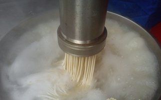 荞面饸饹是用陕西地域所产荞面压制的一种细长的圆柱形面食,古时成为“河漏”,距今已有六七百年历史。饸饹冬可热吃,筋道柔软;夏可凉食,清凉利口,有健胃消暑之功效,老少皆宜。