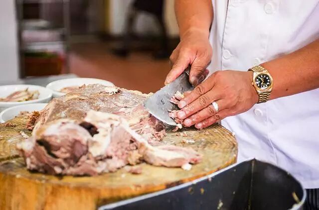 羊肉泡馍第四代传承人乌师为我们切羊肉片 宣爷/摄