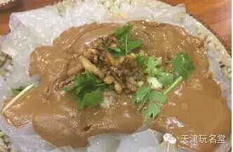 推荐理由:他家的麻酱凉皮是非常正宗传统的天津人吃法哟,不加别的乱七八糟配菜,只有少许黄瓜香菜提味,剩下的全是香香的麻酱配凉皮!赞!