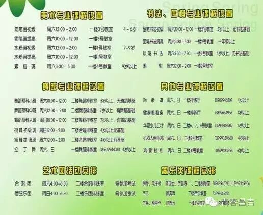 1、常年开设课程涵盖少儿舞蹈、绘画、器乐、声乐、体育等活动项目。