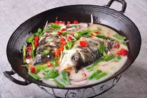 千岛湖鱼头一个(约重2000克),圆形红泡椒、葱段、姜片各5克。