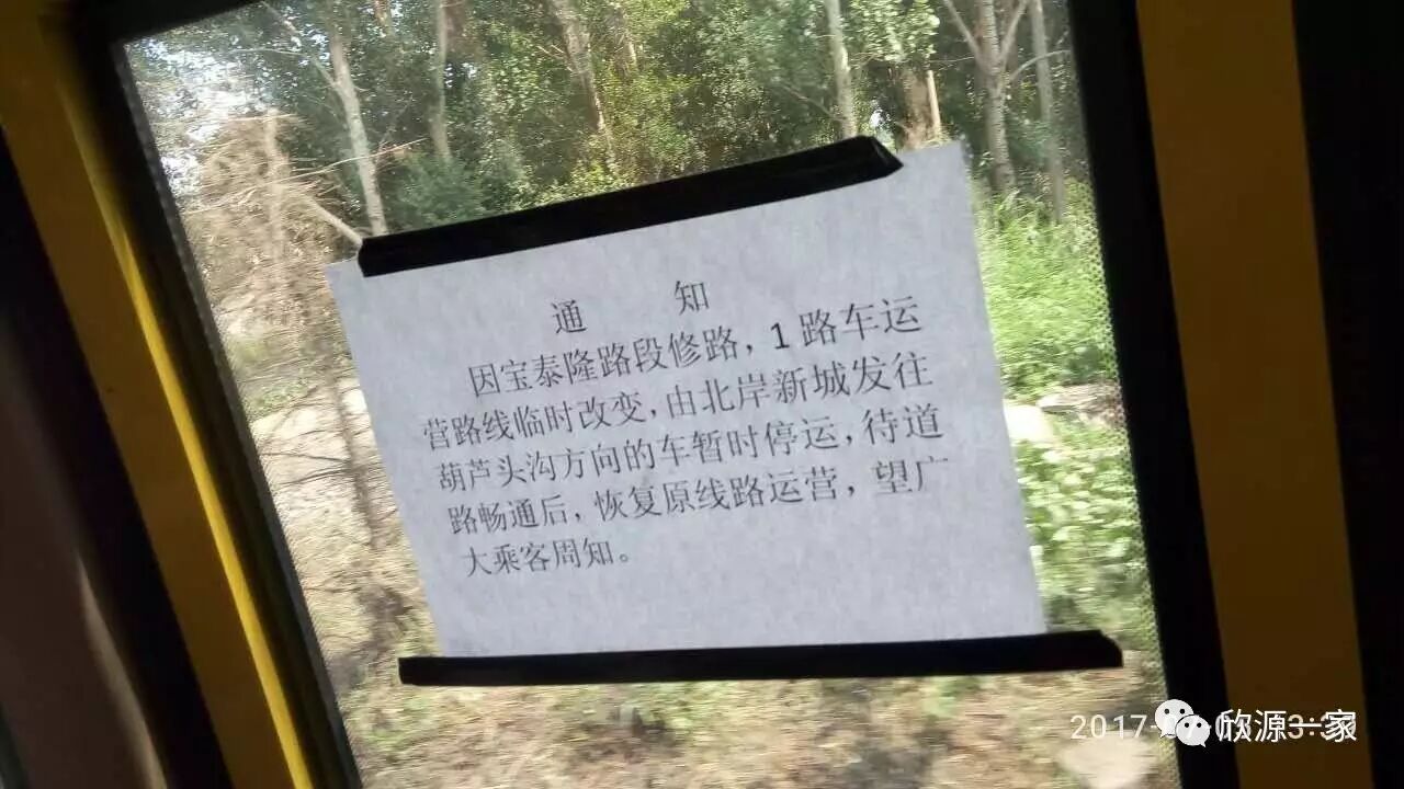 因宝泰隆路段修路,1路车运营路线临时改变,由北岸新城发往葫芦头沟方向的车暂时停运,待道路畅通后,恢复原线路运营,望广大乘客周知。