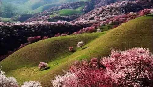 三月到四月,新疆是鲜花的天下,吐鲁番的杏花最先迈入春季,紧跟着伊犁的杏花犹如油画一样散落在初春的大草原上,美得夺目!