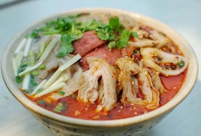 一碗香喷喷的葫芦头就做好啦,一般粗狂的老爷们,还会配上一盘梆梆肉,吃着那叫一个带劲。碗里有肥肠、肉片、鹌鹑蛋、木耳、油豆腐片、粉絲、韭黄,上面再飘浮一层红辣椒油,使人食欲大开;各种食材融合,味道谆厚香郁,肥而不腻,泡菜酸爽。