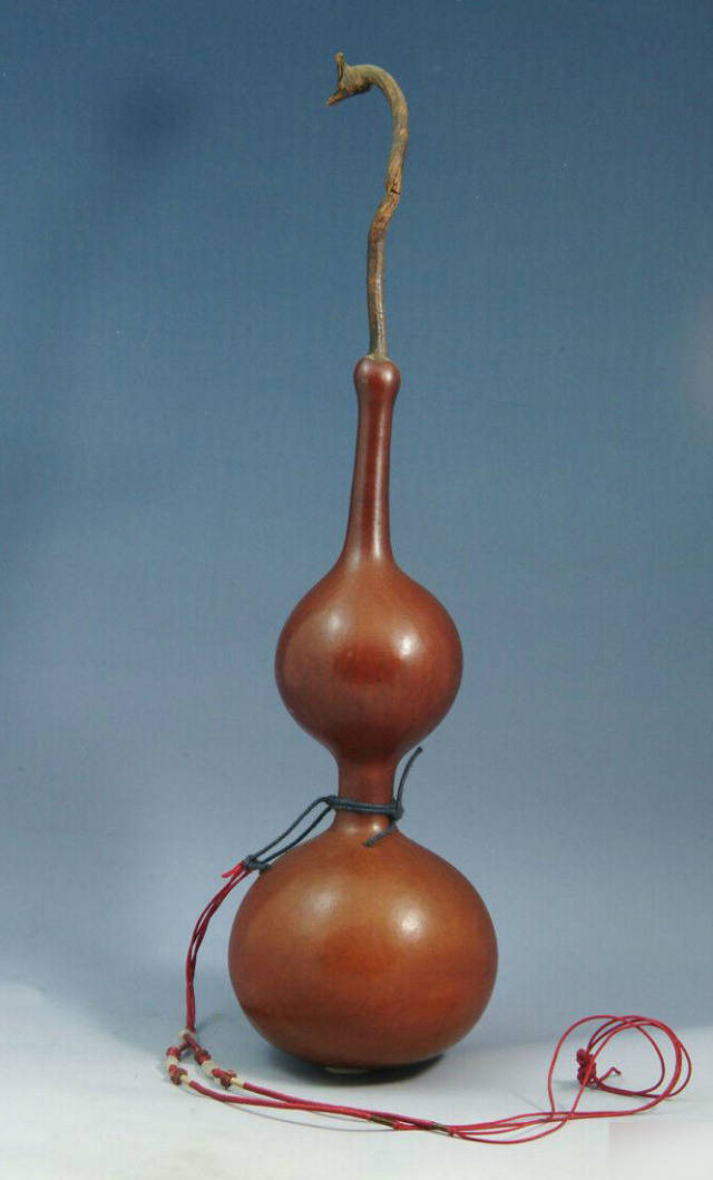 盘玩葫芦的最高境界,是使其变色至后来的紫红,深枣红色,全身发亮,挂瓷儿、上色,呈现红玛瑙色。