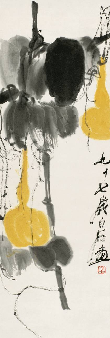 晚清民国以降,以吴昌硕、齐白石为代表的画家将葫芦题材的绘画发挥到极致。他们不仅将葫芦作为绘画本体来描绘,更赋予葫芦多重文化内涵,这就使得一个极为小众的绘画科目升堂入室,引起美术史学者的垂注。