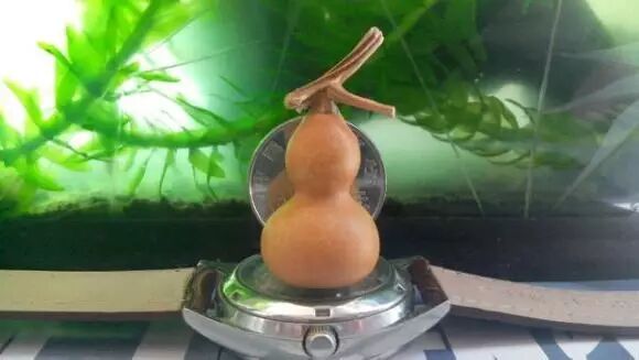这里的“草里金”是打引号的,因为标准的草里金应该在3cm以下,如豌豆大小,而且必须是本地葫芦。但现在有些商家为了追求利益,在葫芦生长初期,会通过药物干预的方式人为控制葫芦长大。这类药葫芦虽说个头小,但是龙头细,不响籽,脐不好(容易歪和炸),皮质不好,易皱,密度低。