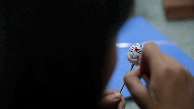 看见这么多惟妙惟肖的卡通人物,你们是不是也和小编一样,第一眼就满心欢喜,忍不住想要据为己有呢!这不,在面人王虎老师的指导下,小编也体验了一把面人的制作过程,亲自制作了一个专属于我的“哆啦A梦”。