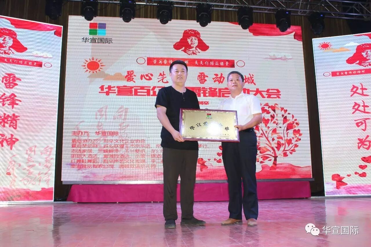 利辛县文明办副主任:王雪峰授予华宣爱心企业牌匾