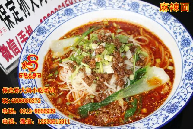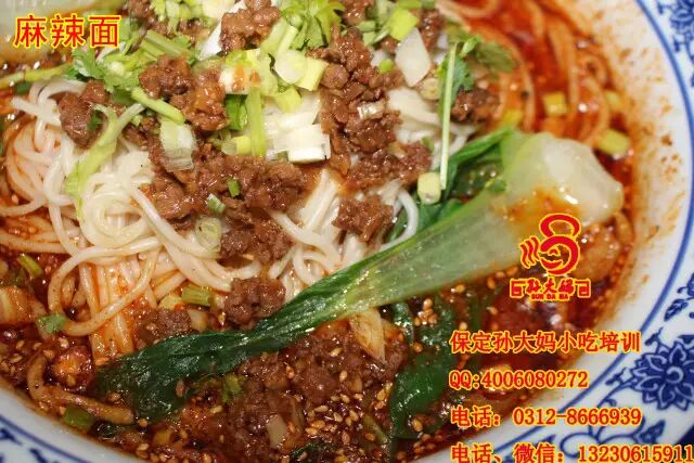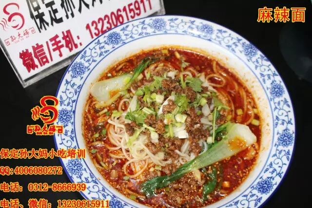 保定孙大妈小吃培训班项目:兰州拉面、安徽板面、重庆小面、担担面、臊子面、饸饹面、排骨面、土豆粉、肉丝面、油泼面、饸饹面、过桥米线、酸辣粉、一根面、山西刀削面、河南烩面、热干面、疙瘩汤、凉面、手擀面、肥肠面、排骨面、鸡块面、炒面、焖面、香辣面、麻辣面、凉面、素炒面、肉炒面等面食培训。