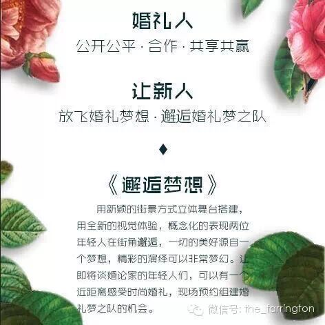12月3日,潍坊富华大酒店将联合瑞庭婚礼以及多家婚礼服务机构为您呈现一场美轮美奂的主题婚礼秀——邂逅梦想。不仅会为您带来视觉上的震撼,也有提问抽奖互动环节,那些已经在富华预定婚宴的准新人,将有机会获得惊喜大礼喔,快来参加吧!