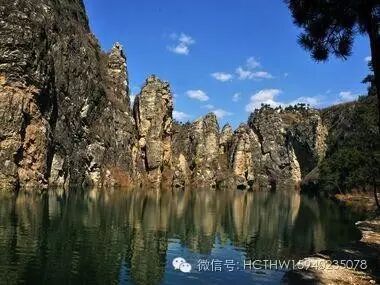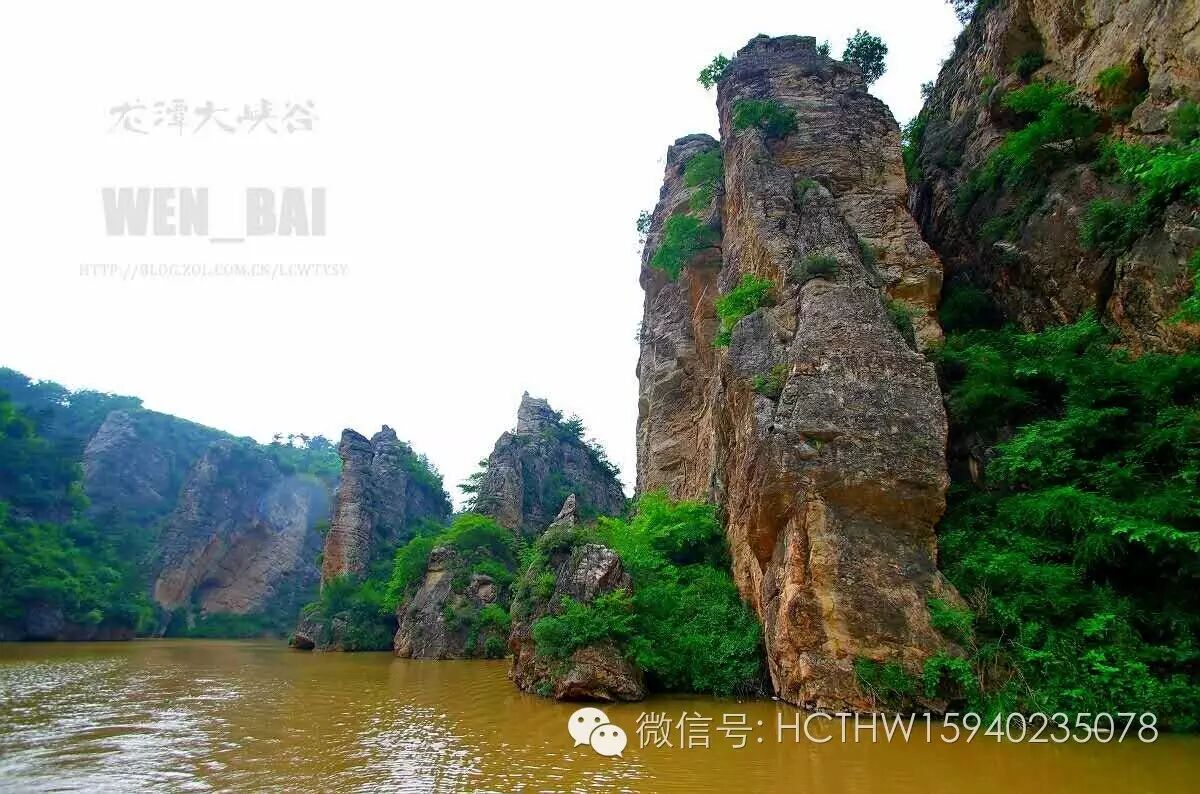 龙潭大峡谷由平地台阶而下步入谷底, 整个峡谷长52公里,大自然巧夺天工,形成的绝妙景观令游人赞不绝口,当你乘船驶入石林峡谷中,蜿蜒连绵、气势磅礴的石林冲天而立,宛如桂林山水的缩减版;以及峡谷中千百年来自然形成的石窟,紧紧相连非常奇特;形象逼真的凤凰石仿佛在向人们展示它美丽的身躯。步入龙潭大峡谷,给人们的第一感觉是奇、特、险。这里到处流动着美,花岗岩、火山岩,经过大自然鬼斧神工的雕琢形成了神态各异的自然景观