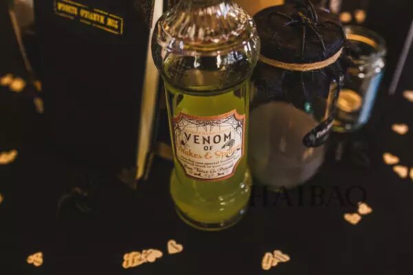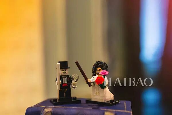 婚礼蛋糕也是从《哈利波特》书中得到的灵感,蛋糕上的小人儿分别为伏地魔,和新娘最喜欢的人物——女食死徒贝拉特里克斯·莱斯特兰奇。