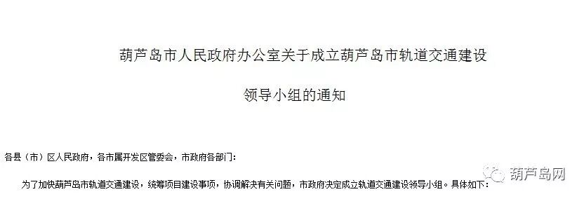 2016年12月,市委、市政府正式将葫芦岛市城市轨道交通项目提上日程。因此,市委市政府高度重视,专门成立葫芦岛市轨道交通建设领导小组,领导小组办公室设在市建交集团,办公室主任由建交集团董事长任松华兼任。