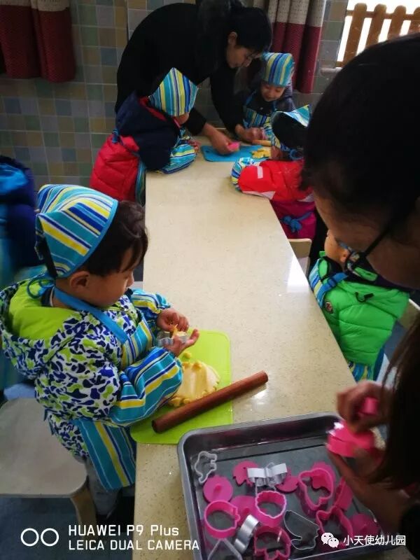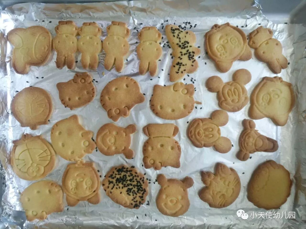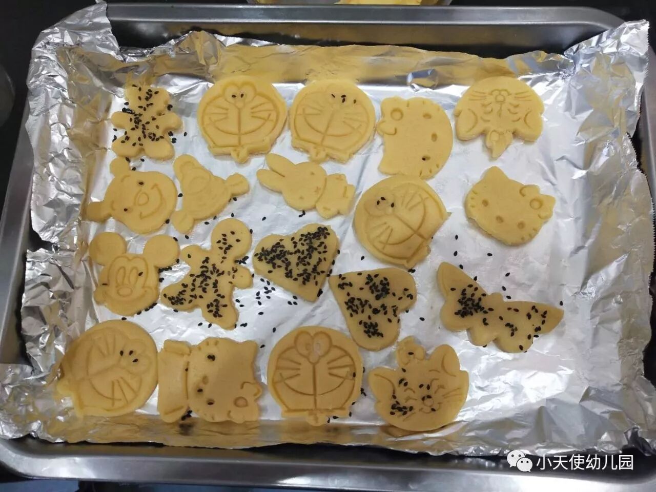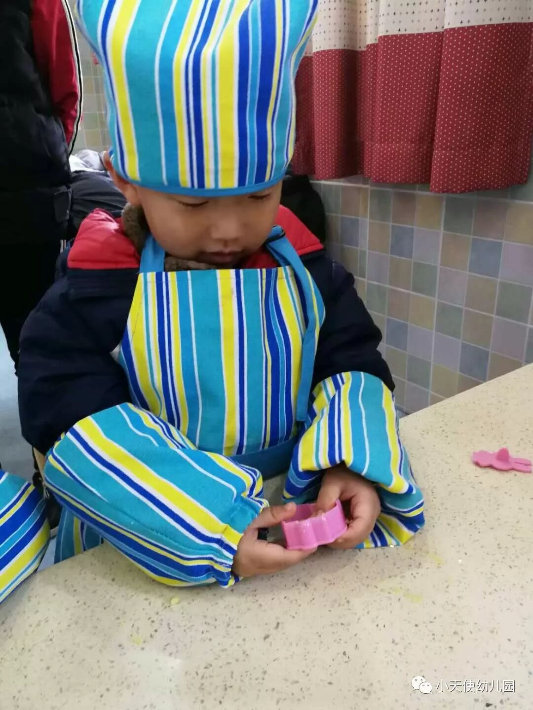 小三班末末妈妈、蛋蛋妈妈、安安妈妈、萌萌妈妈带领小朋友们来到“魔法厨房”制作饼干!